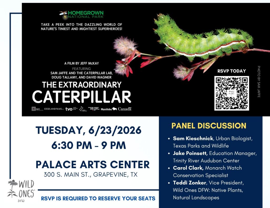 Join WILD ONES DFW’s for a special screening of The Extraordinary Caterpillar followed by a live panel with North Texas conservation experts on June 23—an inspiring evening of discovery, connection, and actionable insights you can’t get anywhere else. Click the event now to reserve your seat and be part of this unforgettable experience—RSVP is required, so register today before spots fill up!
