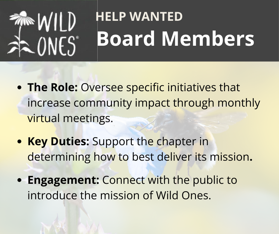 Are you interested in working with other passionate board and/or committee members to determine how our chapter can best deliver on its mission? Would you enjoy managing projects to help our chapter thrive and increase our impact in the community? Board members attend our monthly virtual board meetings and work to ensure we are delivering on our mission objectives. By joining our board, you will help us make meaningful positive change while bonding with other passionate native plant people.