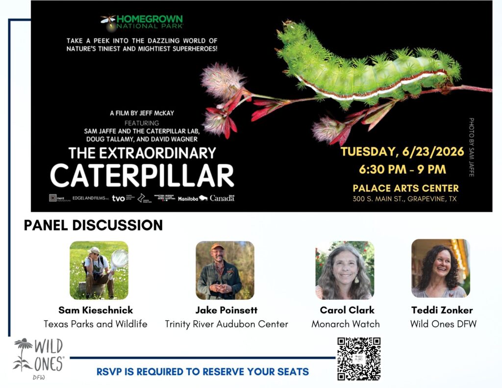 WILD ONES DFW presents THE EXTRAORDINARY CATERPILLAR film and panel discussion with North Texas conservationists on